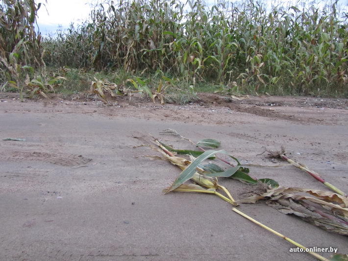 На закруглении водитель, видимо, не успел повернуть руль и выехал, словно комбайн, прямиком на кукурузное поле. Повреждения вряд ли были критическими. Судя по следам, машина уехала своим ходом. Сложно представить, что еще может натворить такой водитель.