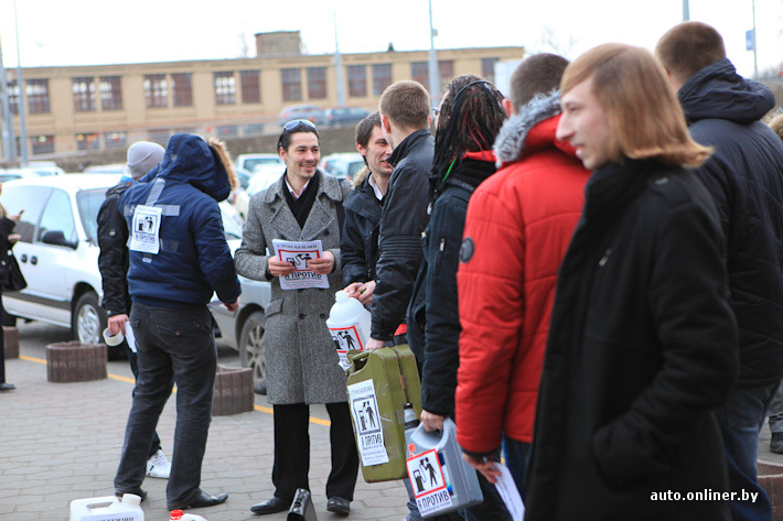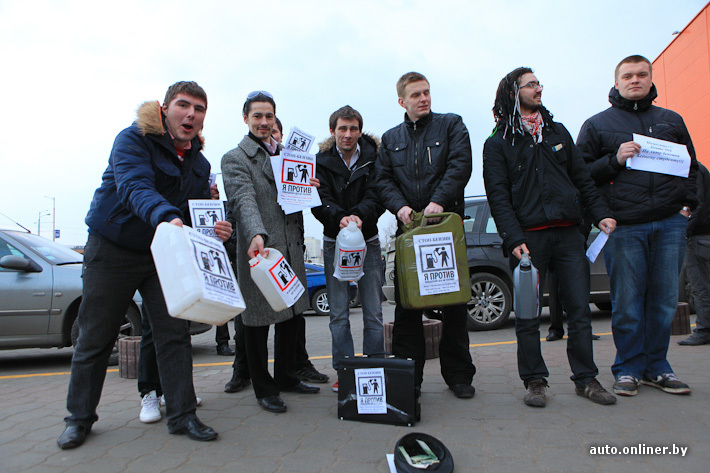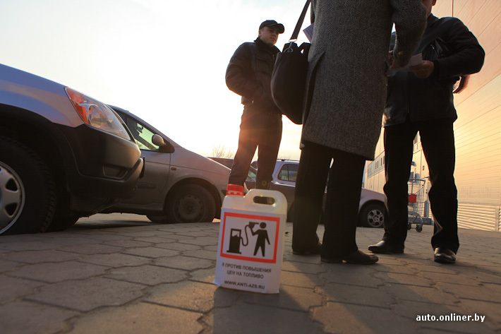 Сегодня вечером в Минске прошел флешмоб: автомобилисты высказывались против повышения цен на топливо. Все происходило на стоянке возле ТЦ «Корона». Многие посетители торгового центра выражали солидарность. Несмотря на не самый радостный информационный повод события, флешмоб прошел очень позитивно.