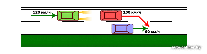 В такой ситуации поможет привычка предпринимать контрмеры заранее, то есть начинать сброс скорости тогда, когда обгоняющий водитель только начал маневр, перестроившись на встречную полосу. Это очень важно, так как если вы сразу покажете обгоняющему, что снизили скорость, он изначально будет на вас рассчитывать, а у вас будет гарантия, что он не подрежет.