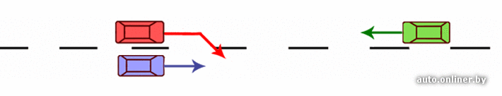 В этом случае необходимо контролировать ситуацию и в нужный момент замедлиться, чтобы дать свободу для маневра водителю, которого сгоняют.