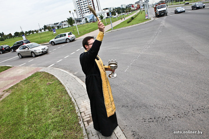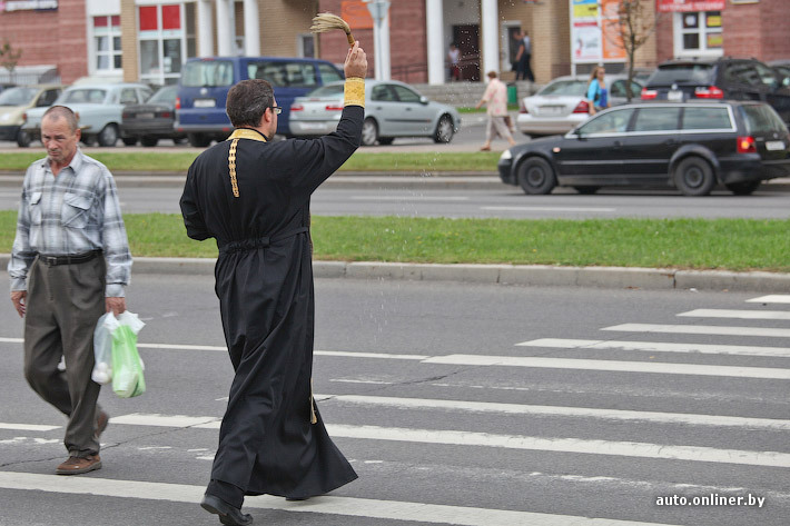К таким инициативам ГАИ относятся по-разному. Кто-то считает это бесполезным занятием, кто-то сам охотно открывает капот автомобиля, чтобы его окропили святой водой. Сотрудники ГАИ Фрунзенского района, по инициативе которых сегодня освящали аварийные участки дорог, рассчитывают таким образом обратиться ко всем участникам дорожного движения.