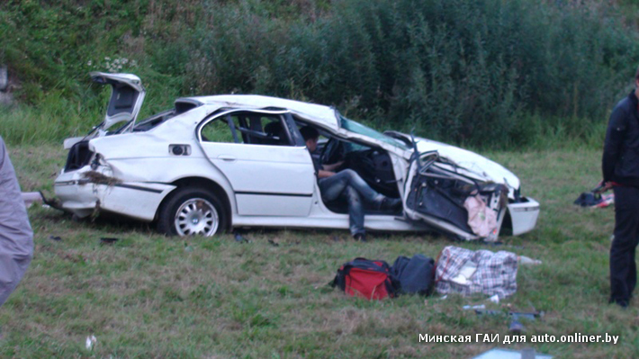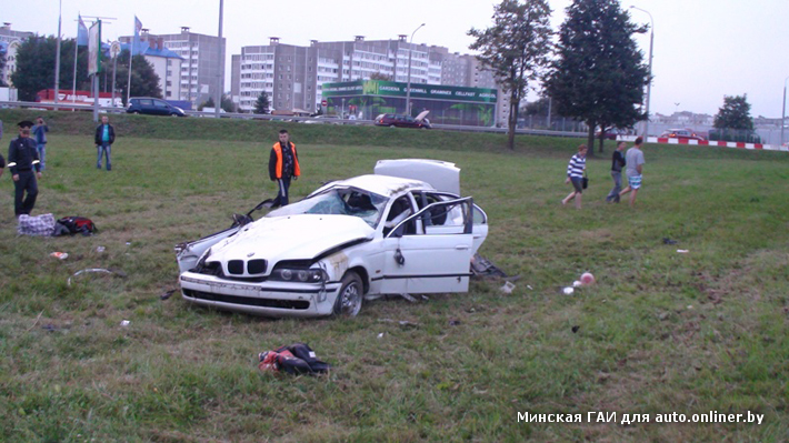Инспектор ГАИ Московского района, оформлявший это ДТП, рассказал следующее: «По словам одного из пассажиров BMW, автомобилем управляла девушка. Эта информация проверяется, есть определенное недоверие к его словам — парень находится в состоянии сильного алкогольного опьянения (по внешним признакам). Всего в машине были четверо: две девушки, два парня, всем — около 20—25 лет. BMW двигался со стороны г. Дзержинска. Автомобиль въехал в Минск, проехал под путепроводом и начал подниматься на внутреннее кольцо МКАД, однако вылетел в кювет, после чего опрокинулся».