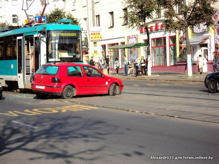 На ул. Я. Коласа в Минске всегда очень напряженное движение и нередко случаются ДТП с участием трамваев. Вчера днем из-за такой аварии остановился поток. Участник форума Auto Onliner сделал фото с места происшествия. За информацией мы обратились в ГАИ Советского района города.