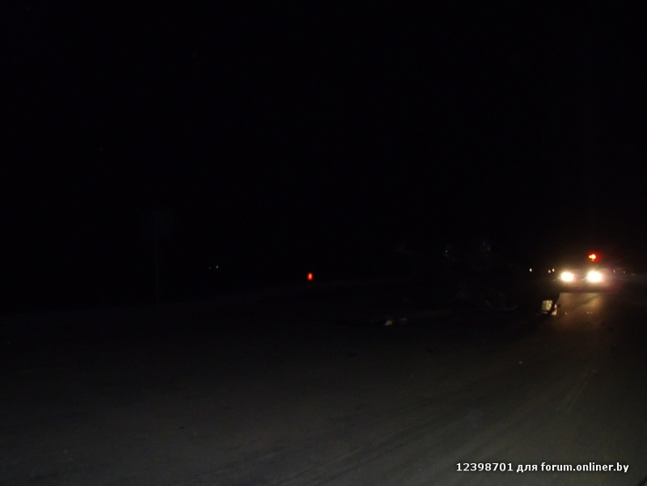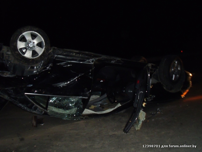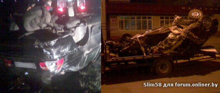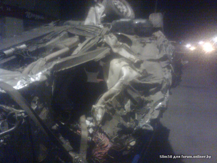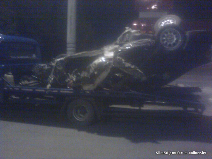 Более серьезная авария произошла на трассе Брест — Минск — граница РФ. Довольно подробно описал обстоятельства ДТП с BMW форумчанин, зарегистрированный под ником Slim58: «Примерно в 24,00 грузили на эвакуатор машину, на трассе Москва-Брест, 370км, в районе д.Обчак. водитель БМВ на большой скорости, около 180 км/ч не справился с управлением и зацепил фуру двигавшуюся в попутном направлении. Обе машины двигались в сторону Минска, со стороны аэропорта. БМВ после столкновения несколько раз перевернулся,и "остановился" на крыше на разделительной полосе. БМВ порвало на много "ошметков", и раскидало по обеим полосам метров на 150. по предварительной версии водитель БМВ находился в состоянии алкогольного опьянения, он не получил никаких повреждений, пассажир с многочисленными травмами в крайне тяжелом состоянии доставлен в больницу,его доставали из разбитой машины сотрудники МЧС. на фото остатки от машины».