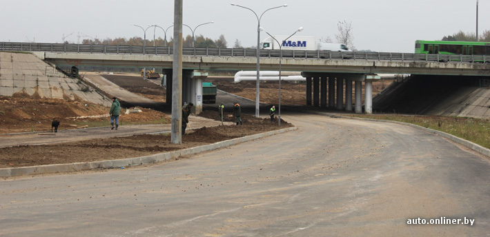 Сейчас на минской кольцевой дороге в районе ул. Монтажников ведутся ремонтные работы. Реализуют решение, которое напрашивалось давно: под путепроводом построили дорогу, которую соединят с ул. Слободской. Здесь же сделают съезд и выезд на внутреннее кольцо МКАД.