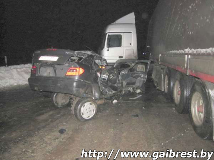 Поездка на машине, за рулем которой находился парень, не имеющий водительского удостоверения, закончилась трагедией для двух молодых людей. Один из них погиб, второй попал с травмами в больницу. Это произошло вчера около 23:40 на выезде из Баранович. «Водитель легковушки выехал на перекресток, не уступив дорогу автопоезду Mercedes», — сообщили в ГАИ Барановичского района.