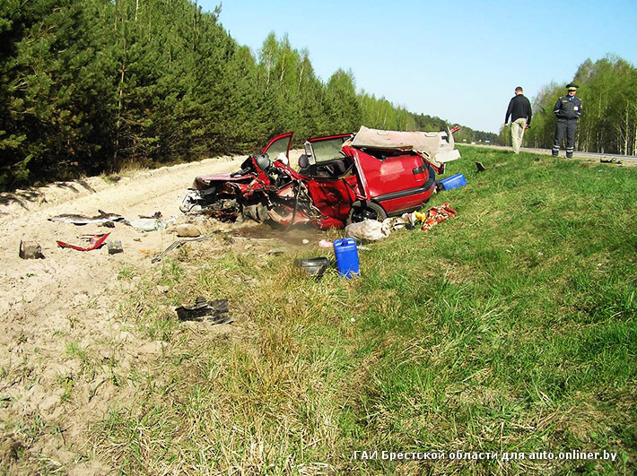 В автомобиле Renault Laguna ехали беременная женщина (за рулем) и еще четыре пассажира (в их числе ребенок). Один из них, увидев выехавший навстречу Volkswagen Passat, закричал: «Выворачивай руль!» Водитель с трудом смогла прижаться к правой обочине, столкновение произошло, но по касательной. Volkswagen же лоб в лоб врезался в ехавший следом за Renault автомобиль Volkswagen Vento, сообщила инспектор агитации и пропаганды ГАИ Брестской области Наталья Касьяник.