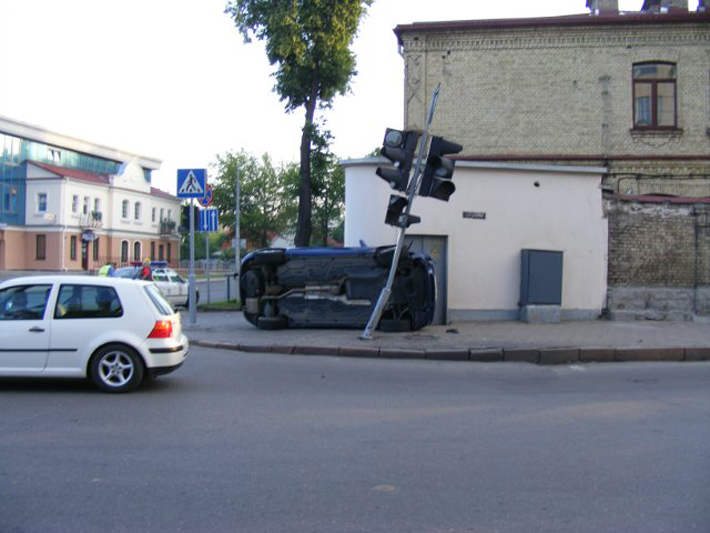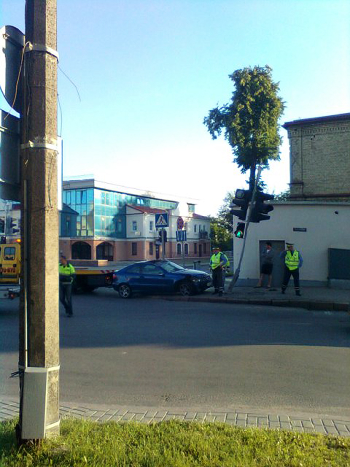 «Сегодня в 6:00 утра были разбужены диким визгом тормозов и грохотом, — написал участник „Гродненского форума“, зарегистрированный под ником Циничный Романтик. — Мерседес на боку между свернутым светофором и углом военного госпиталя. Пострадавших вроде нет, других участников ДТП тоже не замечено». Очевидец разместил фотографии с места происшествия.