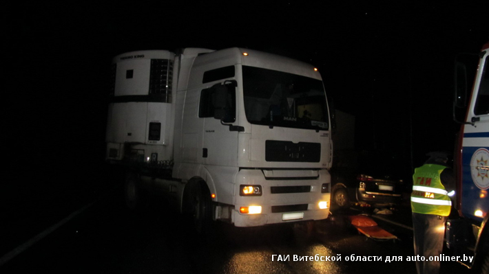 В пресс-службе ГАИ Витебской области дополнили: «Этой аварии предшествовало еще одно происшествие. Водитель (1991 г. р.) Opel Kadett не справился с управлением и съехал в кювет. Водитель фуры MAN (россиянин) решил помочь отбуксировать легковушку из кювета. Он занял автопоездом свою и частично встречную полосу движения. В это время ехавший навстречу в направлении Витебска водитель (1959 г. р.) Hyundai Starex не заметил находящийся на дороге тягач с полуприцепом и врезался в него».