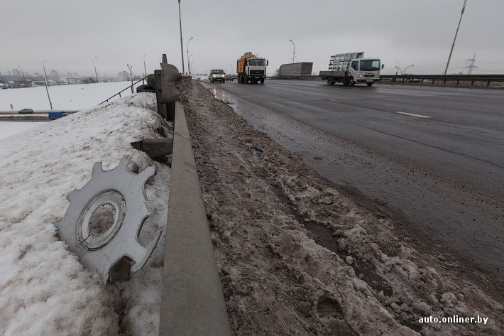 «Как-то подозрительно много машин с пробитым колесом на внутр. Кольце МКАД в р-не Ждановичей... Дорожники опять?», — сообщил утром пользователь Twitter @Dim_Boss (авторская орфография и пунктуация сохранены).