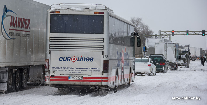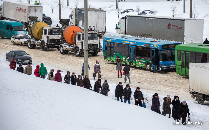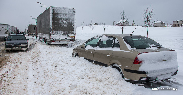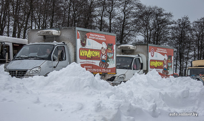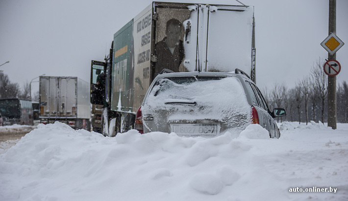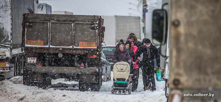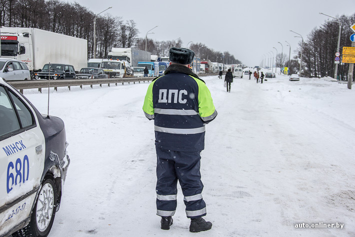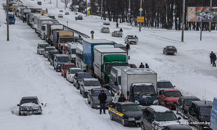В глухом заторе оказалось большое количество единиц общественного транспорта: маршруток и автобусов. Много автомобилей вылетело с трассы. Местные жители помогали пострадавшим от стихии людям топливом, едой и горячим чаем. Что сегодня происходило на дороге, ведущей в Могилев, можно понять из нашего фоторепортажа.