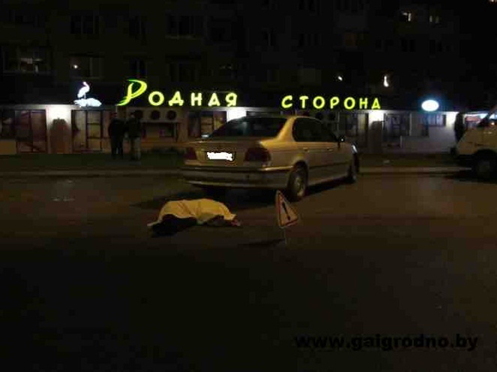 «Младший из приятелей, 19-летний водитель Volkswagen, гнал по правому ряду первым, — сообщили тогда в ГАИ Гродненской области. — Женщина слева по ходу его движения успела пройти по прекрасно освещенному пешеходному переходу три полосы. Ее сбили на четвертой, она пролетела в воздухе около 30 метров. Когда упала на асфальт, оказалась перед ехавшим по левой полосе и уходившим на вторую половину улицы BMW. Второй автомобиль протянул человека под днищем еще около 30 метров и проехал по телу колесом. Шансов выжить у 49-летней женщины не было, она погибла на месте».