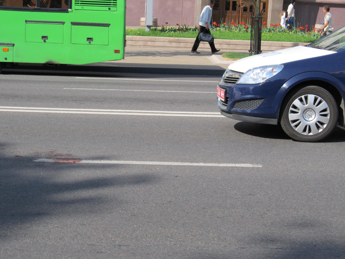 По словам очевидцев аварии, седой мужчина был одет неопрятно, когда перебегал дорогу — не смотрел по сторонам, не обращал внимания на автомобильный поток. «Ему повезло, что водитель Opel еще не успела набрать скорость, — рассказал минчанин, ехавший за Opel. — Тем не менее удар был довольно сильным: у автомобиля помят капот и характерная вмятина на лобовом стекле. Мужчину отбросило на асфальт, сильно была разбита голова». По предварительным данным инспекторов, пешехода доставили в больницу с черепно-мозговой травмой и переломами обеих голеней.
