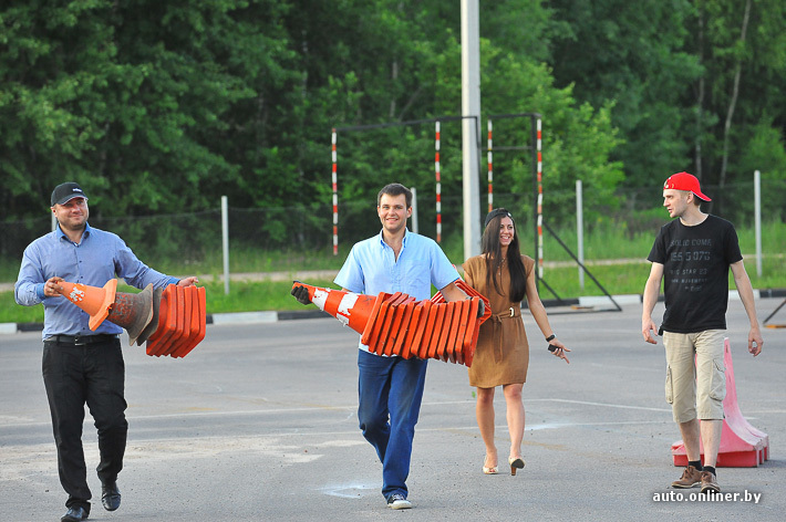 Во время первых двух заездов Юлия с улыбкой очень аккуратно входила в повороты, правда несколько раз не вписавшись. Пришлось сдавать назад, терялось время... Однако в третий раз она явно почувствовала трассу, уже смелее справлялась с зигзагами и ей удалось улучшить показатель. Результаты были такими: 39,19, 37,83 и 30,95 секунды соответственно. Считается, что за три заезда водитель как раз успевает привыкнуть к трассе. Прогресс налицо!