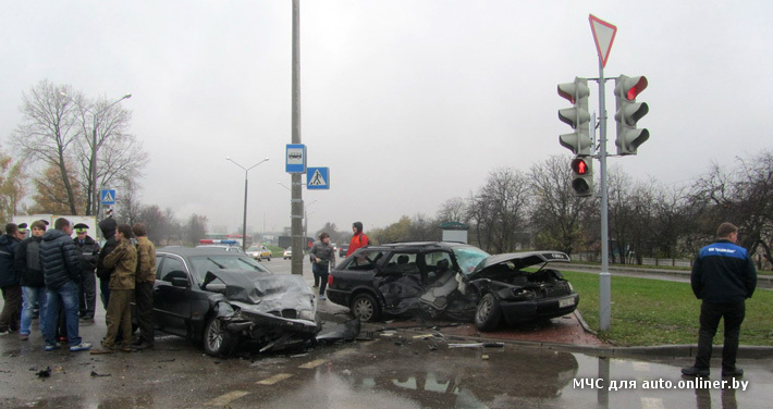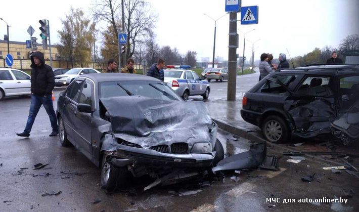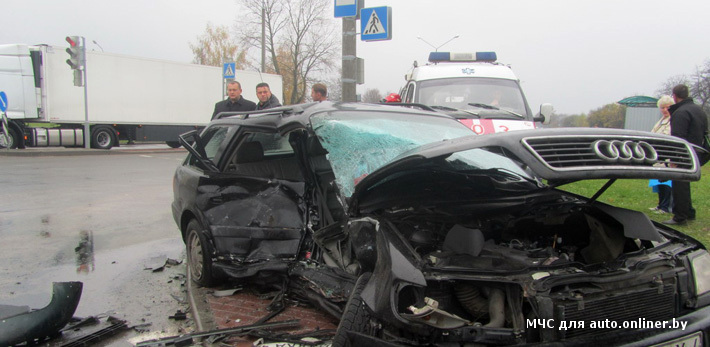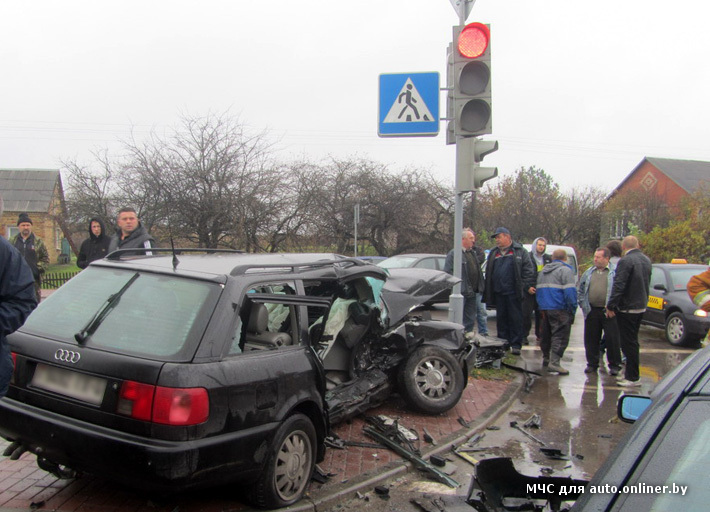 Предварительная версия такая: водитель BMW ехал прямо, когда происходила смена сигналов светофора, а Audi поворачивала налево. От удара в последней машине пострадали два человека. Один из них находится в тяжелом состоянии. Пока в ГАИ Гродненской области не хотят давать оценку произошедшему. Там говорят, что есть видеозапись с регистратора (сделана из автомобиля BMW). Днем во вторник она была обнародована.