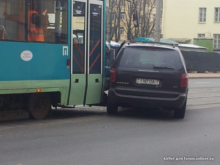 ДТП случилось на столичной улице Козлова около полудня. «Трамвай в котором я ехал, подбил в бочину поворачивающего налево доджа, — написал пользователь форума Onliner.by, зарегистрированный под ником kirller (орфография и пунктуация автора сохранены). — В додже разлилось ведро краски».