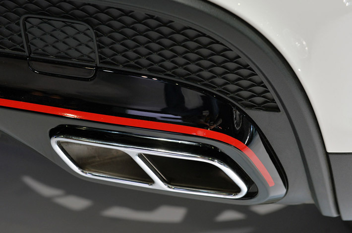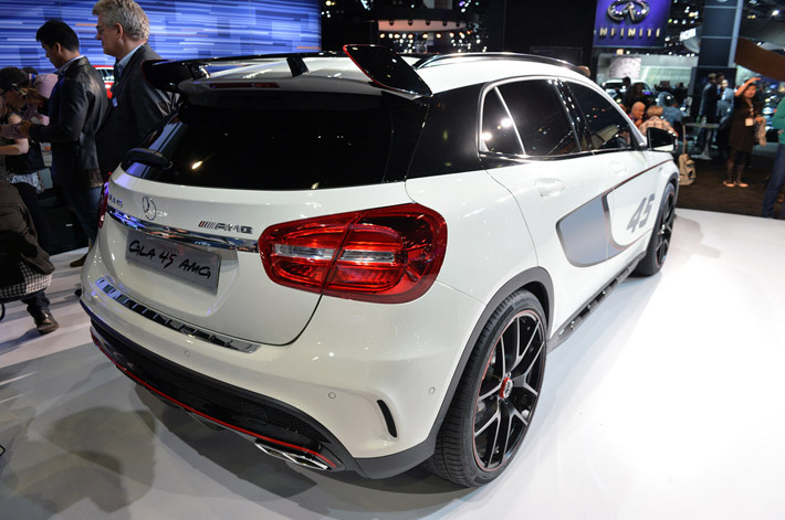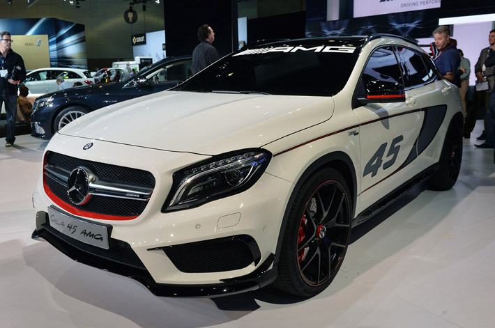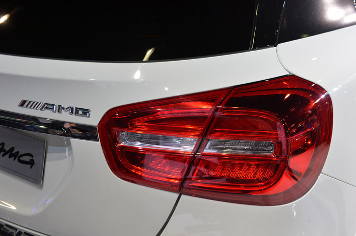 Выставочный экземпляр получил гоночные наклейки, большой спойлер на пятой двери и внушительную тонировку всех окон. Серийная машина лишится этих элементов. Ожидается, что в шоу-румах GLA45 AMG появится в середине следующего года.
