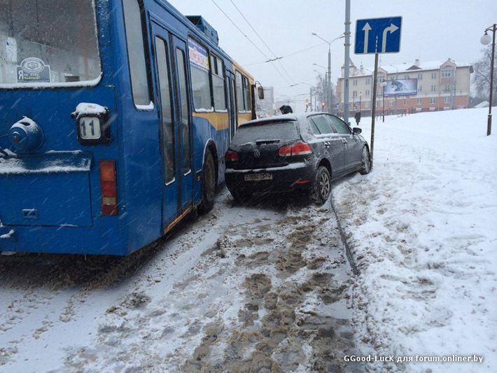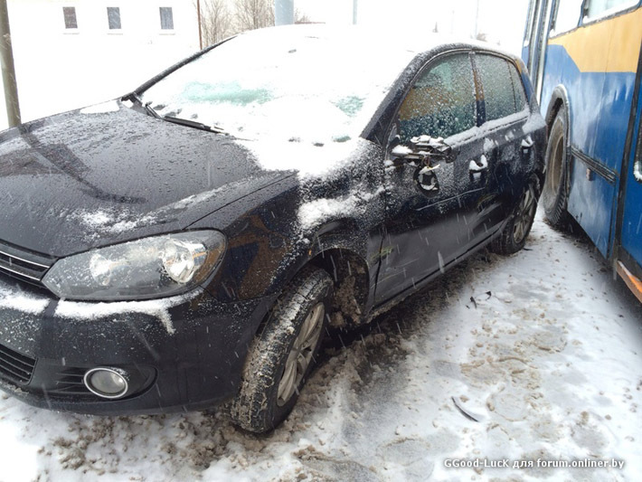 Пользователь нашего форума GGood-LucK разместил видео, снятое регистратором во время визита минчанина в Гродно. Можно предположить, что водителя преследовала полоса неудач. 14 января он чуть не сбил не совсем адекватного пешехода, который сбежал с лестницы прямо на проезжую часть в то время, когда горел зеленый свет для автомобилистов. А 15 января его Volkswagen Golf стал участником аварии — произошло столкновение с троллейбусом.