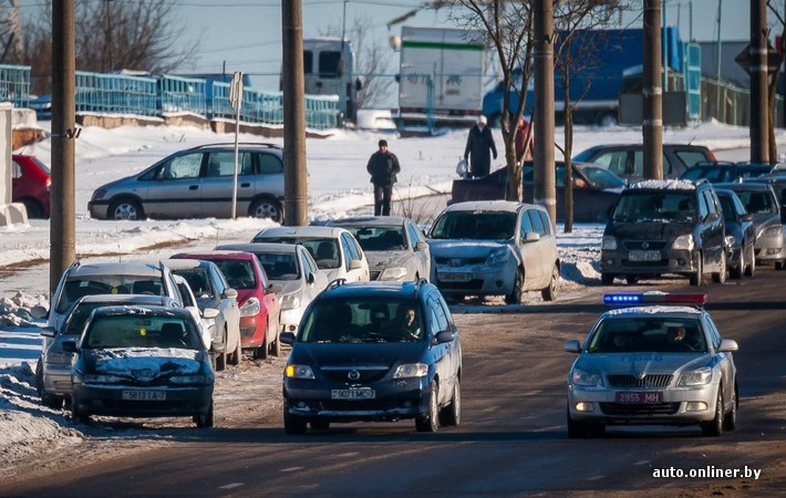 Когда импровизированная колонна начинает движение, поток несколько замедляется. Таксист на Opel явно решает опередить. Но заметив, что на него смотрят, сразу снижает скорость. Хотя должен был остановиться. Встречные автомобили (на том участке ул. Тростенецкой нет разделительной полосы) тоже притормаживают неохотно. А водитель Mazda MPV, двигавшийся в попутном направлении, и вовсе продолжал движение как ни в чем не бывало, пока через громкоговорящее устройство его не попросили остановиться.