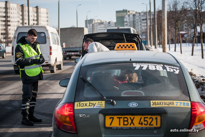 Претензий к минским таксистам по-прежнему много. Некоторые ездят без пройденных техосмотров, страховок, часто нарушают ПДД. В салонах автомобилей грязно, лобовые стекла закопчены от сигаретного дыма, в аптечках — просроченные лекарства. Что уж говорить про тарифы «от борта» и заполнение путевых листов! Вчера сотрудники транспортной инспекции и ГАИ Московского района продемонстрировали, что проблемы ненадуманные: один водитель управлял машиной с наклейками такси, не имея прав, другой обозначил свою Toyota только плафоном и снял его во время движения. На еще одном автомобиле вообще были установлены два номера: спереди желтый, а сзади — обычный.