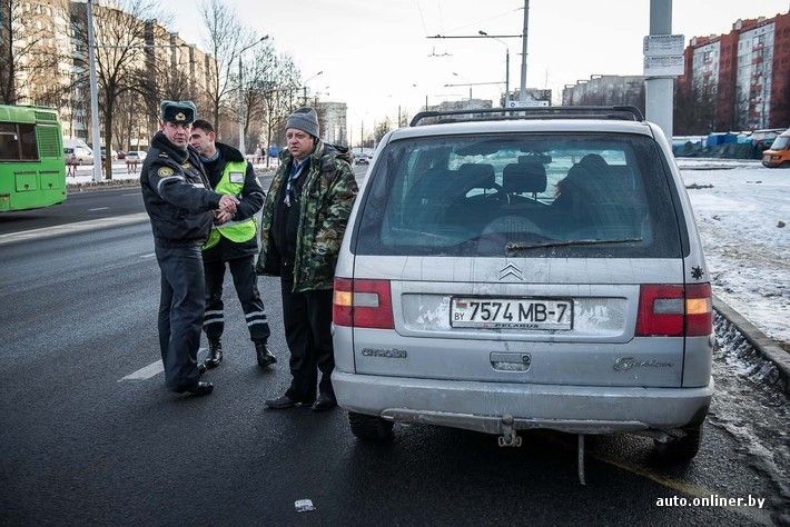 В этот момент сотрудники транспортной инспекции останавливают проезжавший мимо Citroen Evasion. Из примет такси — только две магнитные полоски по бокам. Ни плафона, ни желтых номерных знаков.