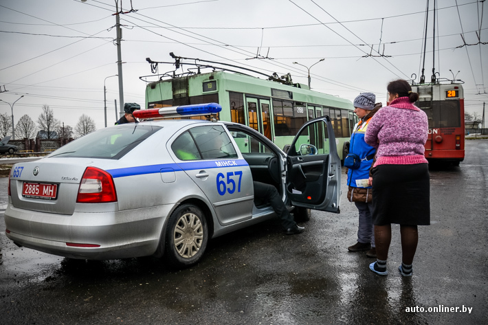 Вообще-то, говорят в ГАИ, снимки предъявлять необязательно. В данном случае действует презумпция доверия сотрудникам милиции. Это не как в случае превышения скорости, когда нарушение фиксируется радаром (который сертифицирован и имеет срок госповерки). То есть доказывать инспектор ничего не должен. Но, разумеется, многие водители требуют. В этот раз водителю троллейбуса фотографию показывают. Его запечатлели в разных ракурсах. Не поспоришь!