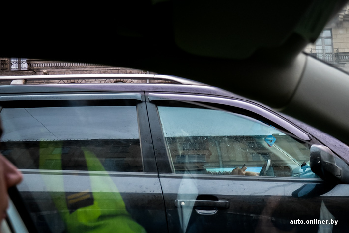 Останавливают его уже на пр. Независимости. Мужчина в этот момент держит телефон. Выйдя из машины, отрицает: «Сейчас я не разговаривал… Просто отклонил вызов. Я же не держал его возле уха».