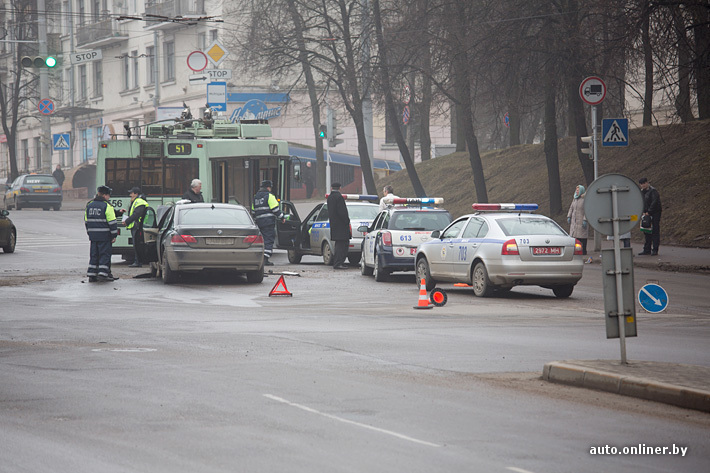 Подтверждаются предположения очевидцев вчерашней аварии на перекрестке улиц Толстого и Московской в Минске. Свидетели утверждали, что BMW словно никто не управлял: он выехал на встречную полосу, столкнулся с Honda, задел опору путепровода и врезался в троллейбус. В ГАИ корреспонденту Onliner.by сообщили: по предварительным данным, с мужчиной случился приступ, кроме того, он пострадал в аварии.