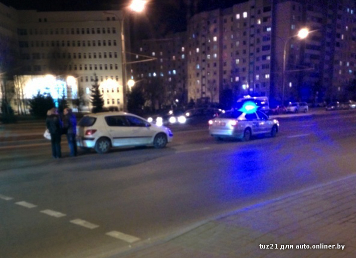 Авария произошла около 20:00 возле здания поликлиники, где находится пешеходный переход со светофором. Наезд был совершен на автомобиле Peugeot, который двигался от ул. Матусевича к ул. Притыцкого.
