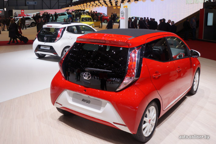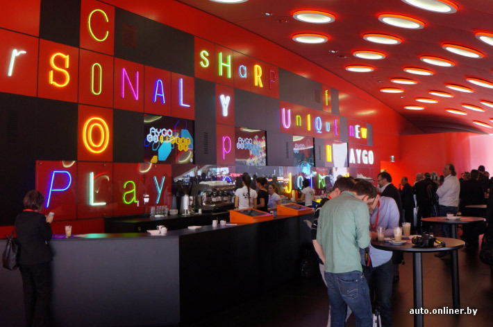 Первым по пути оказался стенд Toyota. Главной и единственной новинкой японского производителя в Женеве стал Aygo нового поколения. Машина получила гигантский крест на передней части и вскоре поступит к европейским дилерам вместе со своими «братьями» Citroen C1 и Peugeot 108. Все они были представлены в Швейцарии.