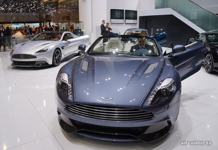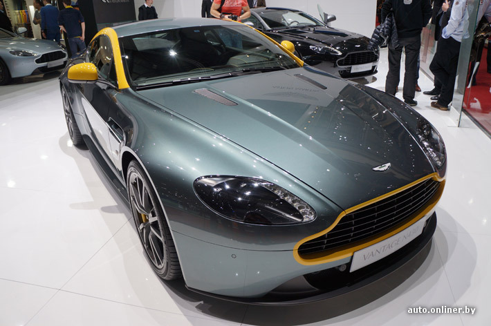 В пяти метрах от стенда Rolls-Royce находится еще один британский производитель дорогих автомобилей — Aston Martin. Учитывая, что данная компания часто вообще не принимает участия в выставках (новинок-то нет), журналисты очень тепло приняли презентацию спецверсии V8 Vantage N430. Кроме нее на небольшом стенде разместились и другие модели Aston Martin.
