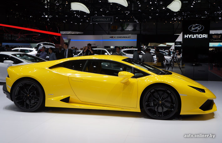 Итальянская Lamborghini выкатила на стенд Huracan LP610-4. Этой модели придется попотеть, чтобы достичь уровня предшественника — Gallardo. Судя по тому, что в среднем в мире заказывают один Huracan в час, народу новинка пришлась по вкусу.
