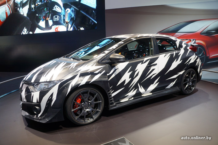 Еще один японский бренд провел долгожданную премьеру предсерийного концепта Civic Type-R. Рядом стоял серийный вариант в камуфляже. Ожидается, что именно этот хетчбэк станет самым быстрым переднеприводным автомобилем в мире. Впервые в истории Type-R получит турбомотор.