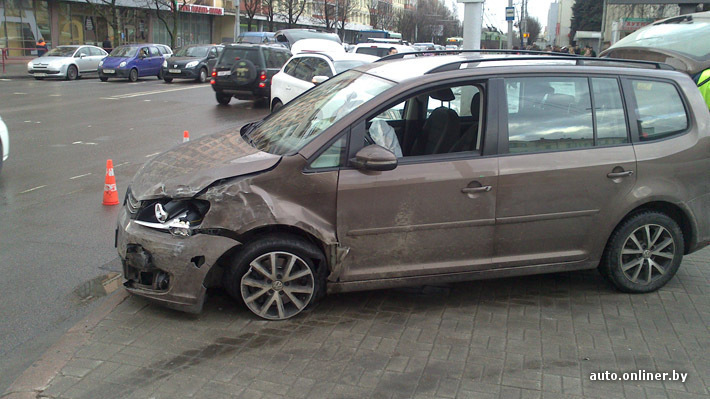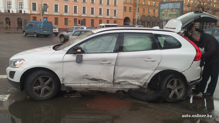 «Вольво стояло на ПП при выходе из метро, пыж 406-й стоял уже на тротуаре с гаевыми, — описал последствия аварии пользователь нашего форума Korshun (орфография и пунктуация автора сохранены). — А народный автомобиль передо мной выталкивали с проезжей части. До этого он стоял полностью на встречке. У вольво вроде удар в правую сторону пришелся, пыж получил влево и перед весь смят.У VW левый перед только. Думаю кто то летел на красный собрал страйк. Из-за таких "водятлов" реально стояли от Я.Коласа и опоздали на работу».