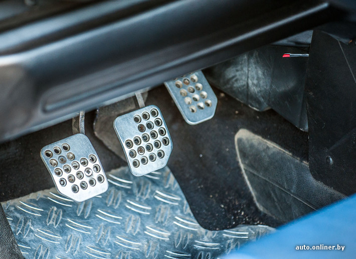 Передняя распорка фирмы Bonrath. Сзади дополнительно поставили стабилизатор поперечной устойчивости. Расстояние от земли до поддона составляет 4,5 сантиметра. «Спящие полицейские не все проезжаю. Но это не напрягает, хотя иногда днищем все равно немного цепляю. Низкий просвет минусом не считаю, потому что за счет этого центр тяжести находится близко к земле и машина очень хорошо держится на дороге. К тому же автомобиль соответствует Stance-направлению», — рассказывает владелец этого необычного автомобиля.