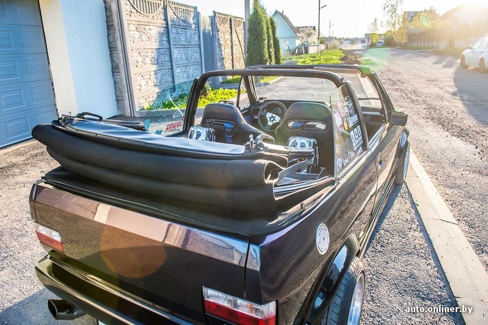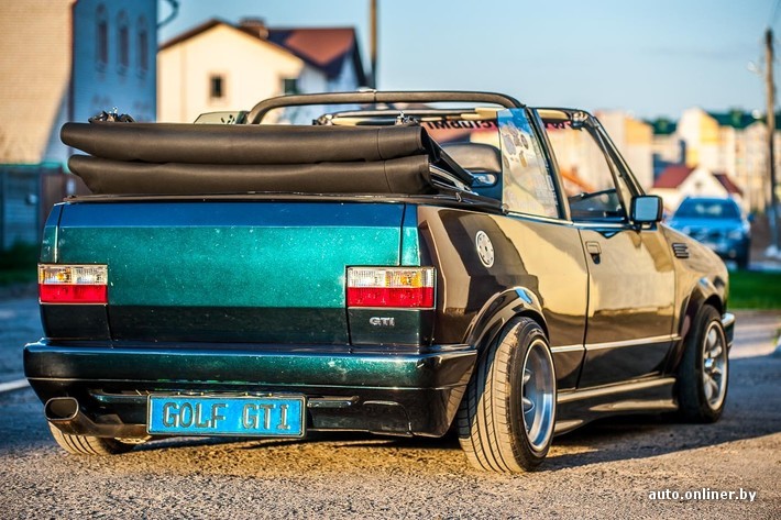 «Как-то ехал домой и думал о том, что нескоро закончу свой давнишний тюнинг-проект — оранжевый Golf MK1 Hatchback, который уже делаю седьмой год. В этот момент я твердо решил купить что-то интересное, пока буду доделывать свой хетчбэк. Давно мне приглядывался один Golf Cabrio. Правда, этот Volkswagen ни за что не хотели продавать. Но после долгих уговоров мне удалось убедить теперь уже бывшего владельца», — рассказывает обладатель тюнингованного Volkswagen Golf.