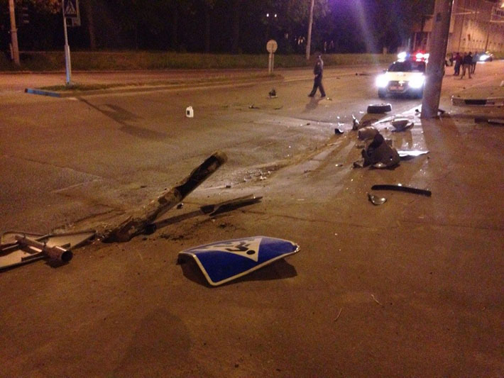 Пользователь нашего форума Fyntik85 уверяет, что стал очевидцем ДТП: «Пешеходу, стоявшему на остановке, очень повезло, т. к. снесенный столб не долетел до него метров 5—7. С какой скоростью двигался, сказать не могу, видно по повреждениям — подлетел высоко. У водителя рассечение на голове 5 см (лично уговаривал съездить в больницу, т. к. отказывался от какой-либо помощи), возили в „четверку“ зашивать, потом на Минина, позже привезли на место ДТП. Очень просил прощения, если кто пострадал».
