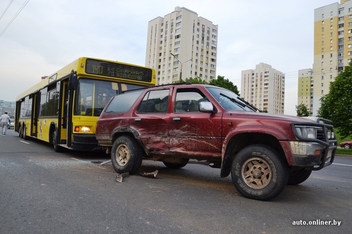 Вчера вечером на улице Лобанка столкнулись три транспортных средства — Kia Sorento, Toyota 4Runner и автобус МАЗ. В результате аварии никто не пострадал, но обстоятельства произошедшего пока вызывают много вопросов, сообщили корреспонденту Onliner.by в ГАИ Фрунзенского района.