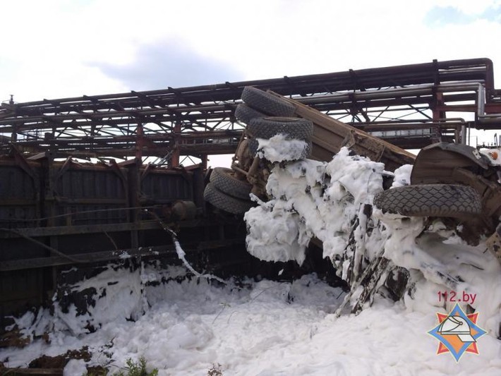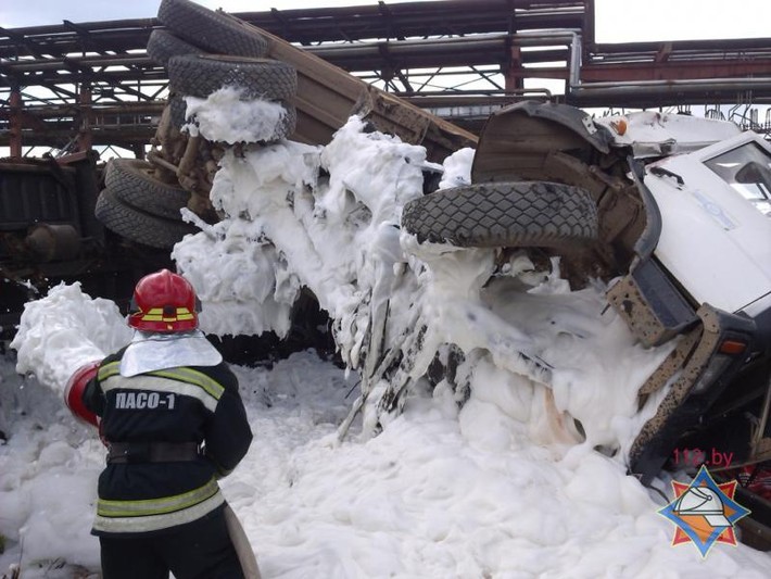 Для предотвращения воспламенения дизельного топлива, вылившегося из бака автомобиля МАЗ, сотрудники МЧС создали воздушно-пенную подушку. Вагон поставили на рельсы с помощью крана предприятия. На работу «Нафтана» инцидент не повлиял, уверяют спасатели.