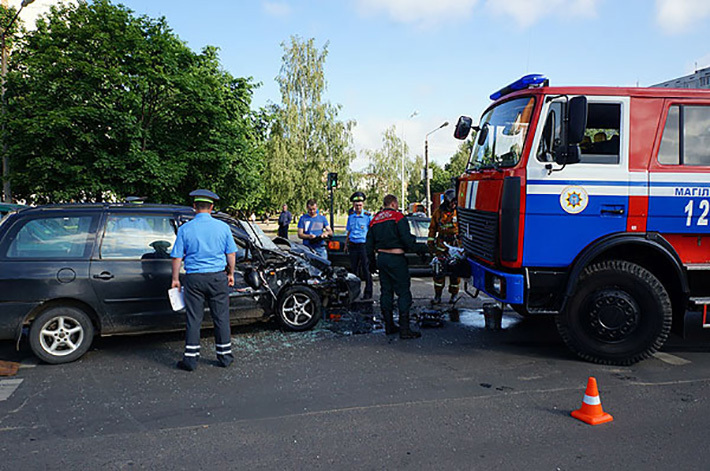 Авария с участием машины МЧС и Volkswagen Sharan произошла сегодня около 08:00 на регулируемом перекрестке в районе остановки общественного транспорта «Поликлиника №8» в Могилеве. По предварительным данным, пожарная машина с включенными проблесковыми маячками двигалась по ул. Симонова со стороны проспекта Шмидта, сообщает сайт Могилевского облисполкома. При повороте налево она столкнулась с легковым автомобилем.