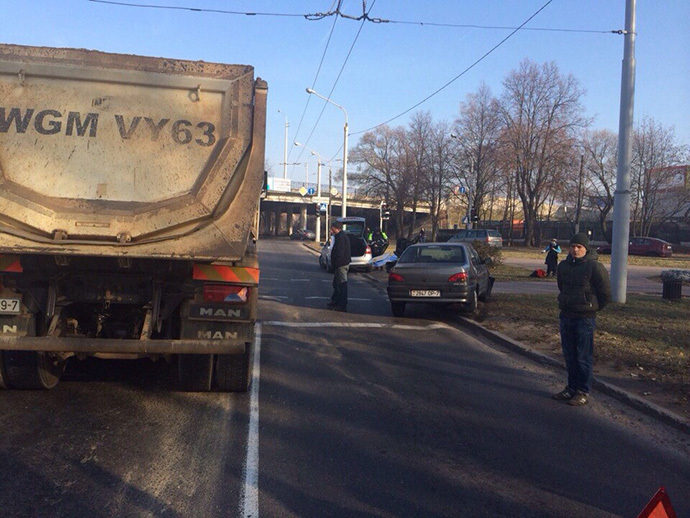 «Оба автомобиля двигались по улице Железнодорожной со стороны улицы Минина, — рассказала Onliner.by Любовь Трепашко, старший инспектор отдела агитации и пропаганды ГАИ Московского района. — 57-летний водитель грузовика решил перестроиться в правую полосу, где в этот момент двигался Peugeot. В результате столкновения Peugeot оказался за пределами проезжей части, где совершил столкновение со светофором, который после этого упал на землю».