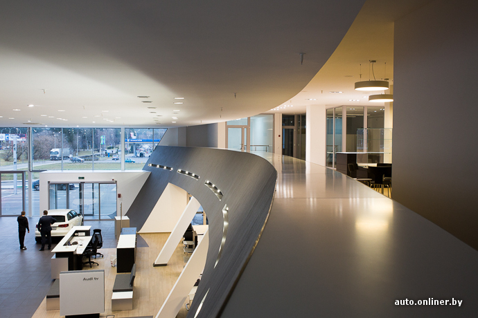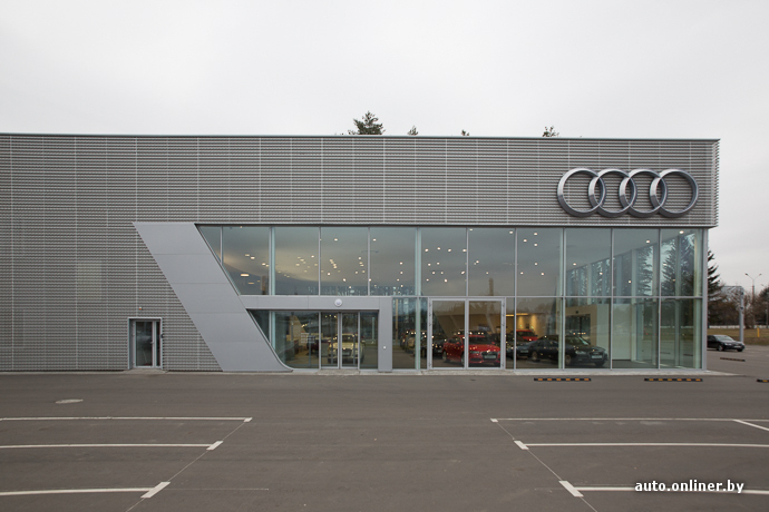Новое здание Audi — это первый в Беларуси дилерский центр компании, построенный по концепции «Терминал». Архитектура помещения воплощает в себе современные тенденции в области дизайна и отражает философию Audi — Vorsprung durch techik — Превосходство высоких технологий.