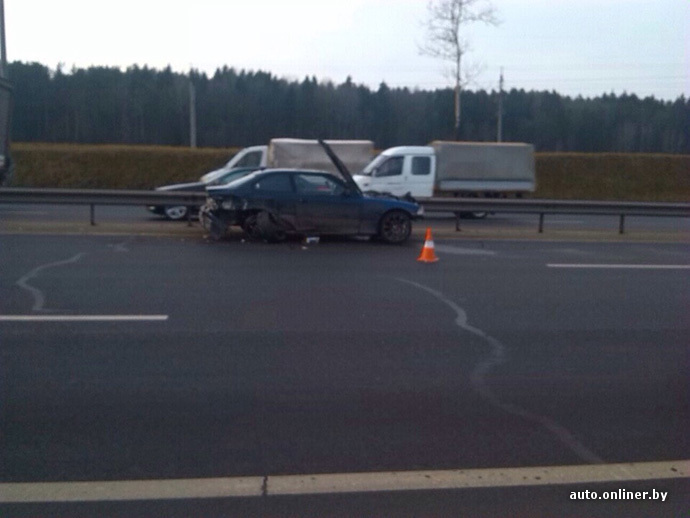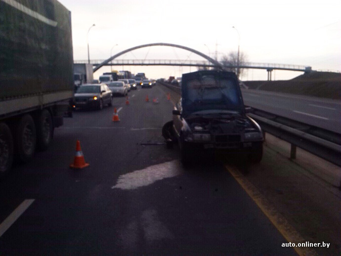 «Сегодня около 11:40 BMW двигался в крайней левой полосе по внутреннему кольцу МКАД (со стороны ул. Громова в направление ул. Монтажников), — описали обстоятельства ДТП в Госавтоинспекции. — В машине находилось двое: 19-летний парень за рулем и его отец в качестве пассажира. Известно, что BMW находился в поставарийном состоянии. В какой-то момент крышка капота на ходу отщелкнулась и поднялась, „перекрыв“ обзор».