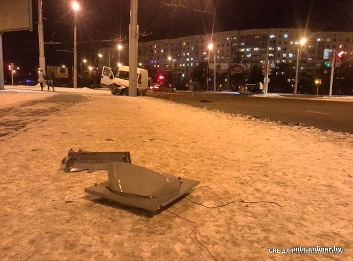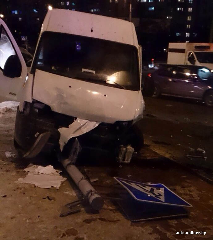 В ГАИ Московского района подтвердили слова очевидца о причинах столкновения, уточнив, что за рулем Mitsubishi находилась девушка 1991 г. р., ехала с подругами. «Легковой автомобиль двигался по ул. Голубева (со стороны пр. Дзержинского), водитель поворачивала налево, на проспект газеты „Правда“, и не пропустила встречный Peugeot, — рассказала Onliner.by Любовь Трепашко, старший инспектор по агитации и пропаганде ГАИ Московского района. — От удара микроавтобус отбросило за пределы проезжей части, он сбил знак. Светофор работал в обычном режиме».