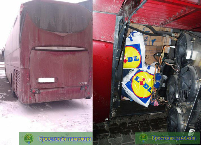 А это один из самых громких случаев прошлого года. Водитель рейсового автобуса Мюнхен — Минск, пользуясь, что называется, служебным положением, попытался провезти в Беларусь одежду стоимостью около 30 млн рублей. Транспортное средство марки Irisbus (2012 г. в.) было задержано в пункте пропуска «Варшавский мост». Пограничники решили провести досмотр и обнаружили в задней части автобуса, а также в нише за решеткой радиатора четыре сумки. Принадлежащее минскому предприятию транспортное средство оказалось под угрозой конфискации.