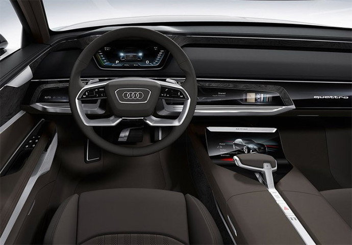 Концепт не имеет дверных ручек. На их месте — незаметные сенсорные панели. Достаточно прикоснуться к двери, и она откроется. В качестве силовой установки используется гибридная система. 3-литровый турбодизель и электромотор развивают общими усилиями 455 л. с. и 750 Н·м. Конечно, машину оснастили полным приводом и 8-ступенчатым АКП. Похожая силовая установка будет использоваться на гибридном Q7, который дебютирует летом.