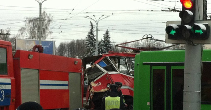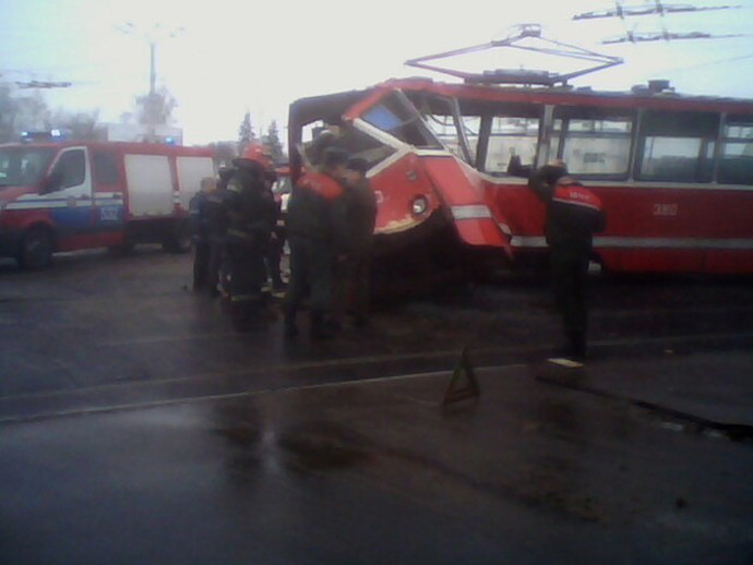 Пожалуй, самым крупным ДТП из нашего списка можно назвать инцидент, случившийся за пару дней до нового 2012 года. Масштабы аварии действительно немалы для Минска — в больницы были доставлены 22 человека. Такие происшествия с участием общественного транспорта в городе не случались давно, признались в ГАИ. Тогда в вечерний час пик пустой трамвай протаранил переполненный троллейбус. Его водитель пыталась предупредить окружающих, кричала и размахивала руками, но предотвратить аварию не удалось. Троллейбус-«гармошка» сложился напополам. Если бы не он, трамвай врезался бы в толпу пешеходов. Позже его водитель пояснила: была неисправна тормозная система, ехала в депо. То есть она знала, что имеется серьезная поломка. Возникает вопрос: почему неисправный трамвай не буксировали?