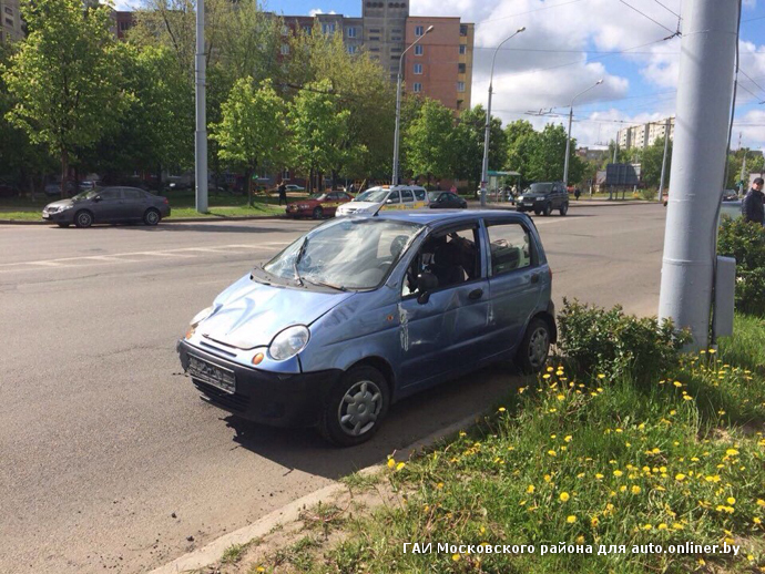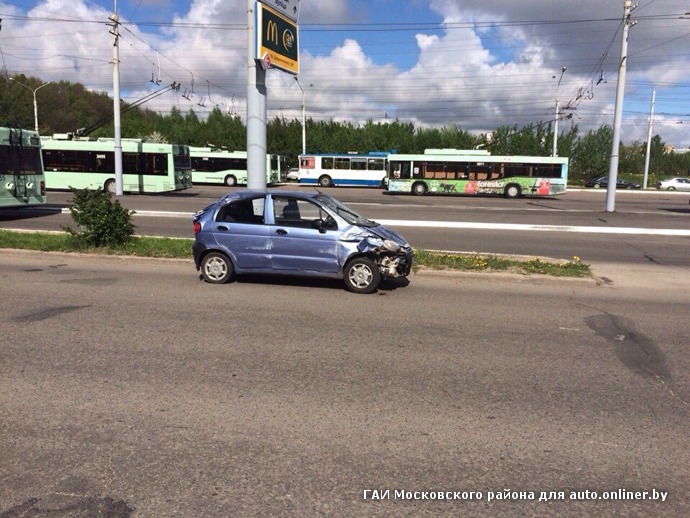 Авария произошла сегодня в 8:30 в районе пересечения улиц Голубева и Рафиева, возле диспетчерской станции «Юго-Запад». Как сообщила корреспонденту Onliner.by старший инспектор по агитации и пропаганде ГАИ Московского района Любовь Трепашко, пьяный водитель Daewoo Matiz совершил столкновение с двумя автомобилями, после чего его машина опрокинулась на бок на встречной полосе.