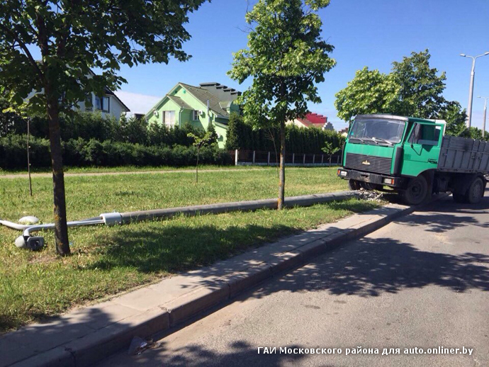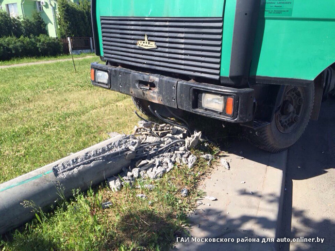 Как сообщила корреспонденту Onliner.by старший инспектор по агитации и пропаганде ГАИ Московского района Любовь Трепашко, авария произошла сегодня около 11:00 на улице Громова в районе дома номер 14. Грузовой автомобиль МАЗ, принадлежащий религиозной организации, выехал за пределы проезжей части и врезался в столб. От удара мачта освещения упала на землю. Никто не пострадал.