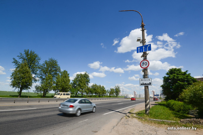 Многие водители привыкли гнать минимум 90 км/ч с гродненской трассы при въезде в столицу. Знак «Начало населенного пункта» располагался за путепроводом через МКАД, уже на ул. Притыцкого. Сегодня же скоростной режим на этом участке изменили. Неизменной осталась работа камеры автоматической фиксации.